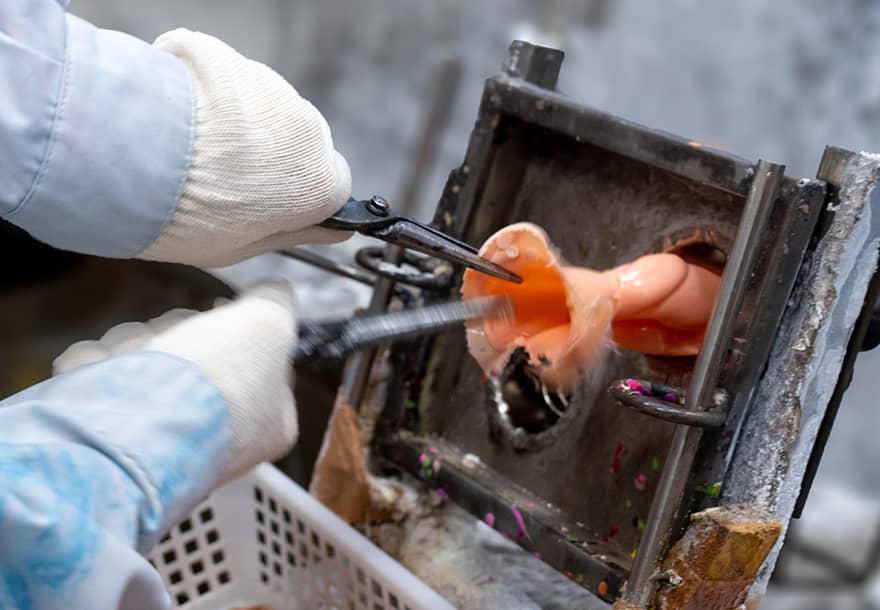 Together with a craftsman, you will pour material into the mold, form the shape, let it cool, and remove it from the mold.