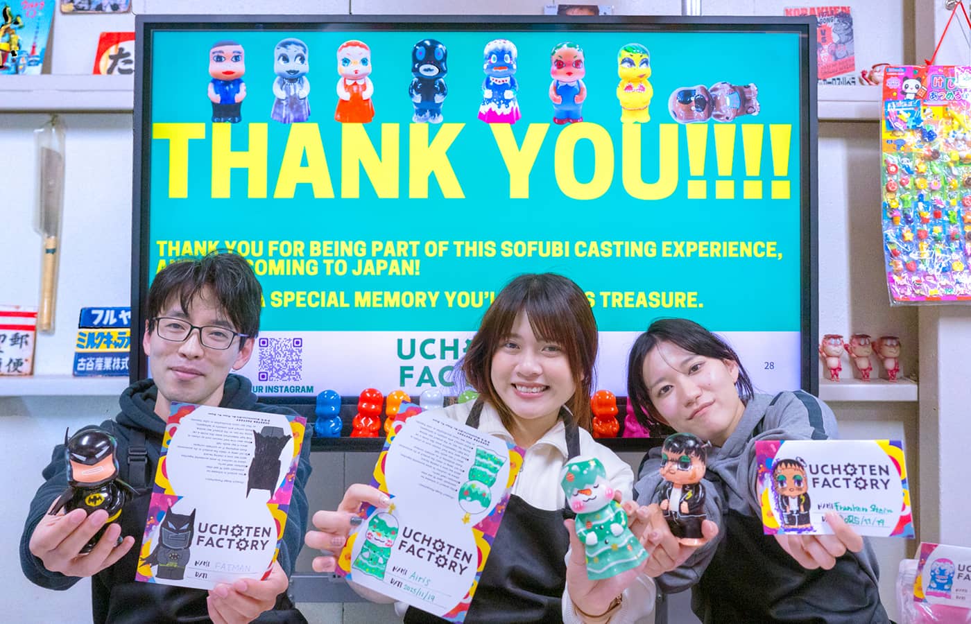 At UCHOTEN FACTORY, we offer a hands-on sofubi (soft vinyl figure) molding